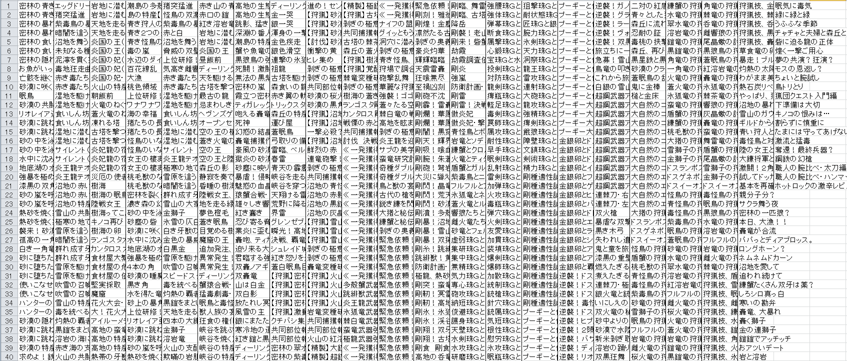 ※重複してるクエ名は季節、昼夜違い、モンス違い等