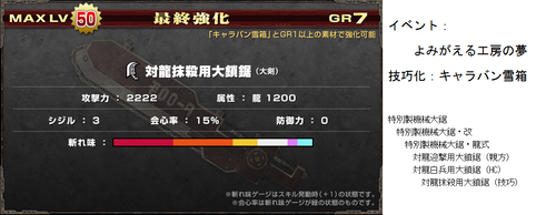 とりいそぎSSできた技巧武器+まとめ データ 武器防具 2014年11月06日 非秘伝 匠のみ SSもらったら追記します♪ …つもりだったのですが、さすが天下の小部屋様♪ 更新あったので技巧だけ並べておきますねw 派生元はこちら♪ 稀kirin凛♪作成分 鎚(パンクには攻撃13ついてます><。) ガンス ノワールさん作成分 片手 太刀 牙狼さん作成分 双剣 SS提供大感謝♪ありがとうございます~(≧ω≦ ) 抜粋分 大剣 MHF運営さん・・これ全然違ううううw 11/19のG6アプデで修正予定なのでご注意を! 狩猟笛 ランス ライト ヘヴィ 弓 ランキング参加してみました(*゚艸゚) [0回] http://kirinwiiu.3rin.net/%E3%83%87%E3%83%BC%E3%82%BF%E3%80%80%E6%AD%A6%E5%99%A8%E9%98%B2%E5%85%B7/%E3%81%A8%E3%82%8A%E3%81%84%E3%81%9D%E3%81%8Ess%E3%81%A7%E3%81%8D%E3%81%9F%E6%8A%80%E5%B7%A7%E6%AD%A6%E5%99%A8とりいそぎSSできた技巧武器+まとめ