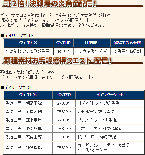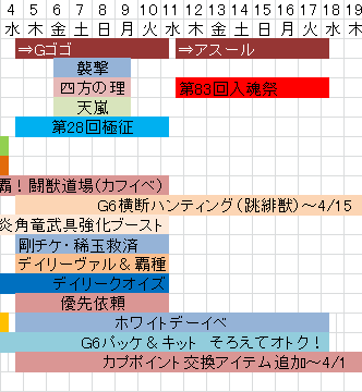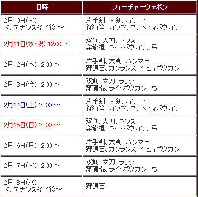 | 6(金) | ドド | クシャ | フルフル | テオ |