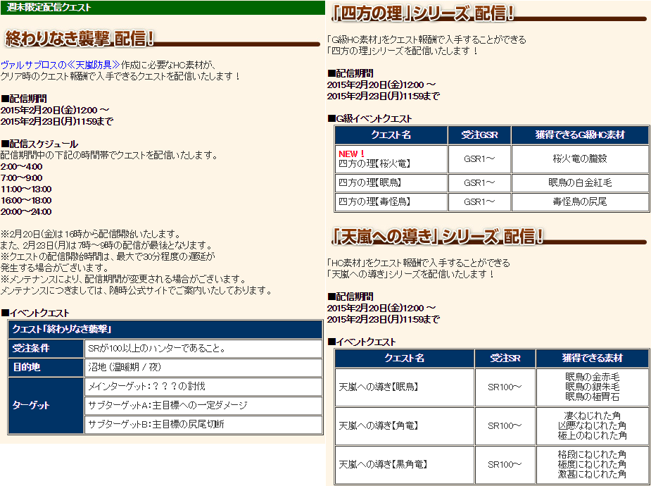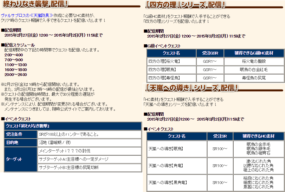 ヴァルサブロス対応の終わりなき襲撃、天嵐、四方が週末に配信!