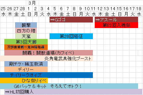 | 7(土) | ギザミ | ティガ | ババ | ドラ |