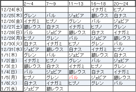 | 7~9 | ------ | ブリッツ | アルゴル | ワダツミ | アルテラ | メラギ | ガルバ | ------ |
