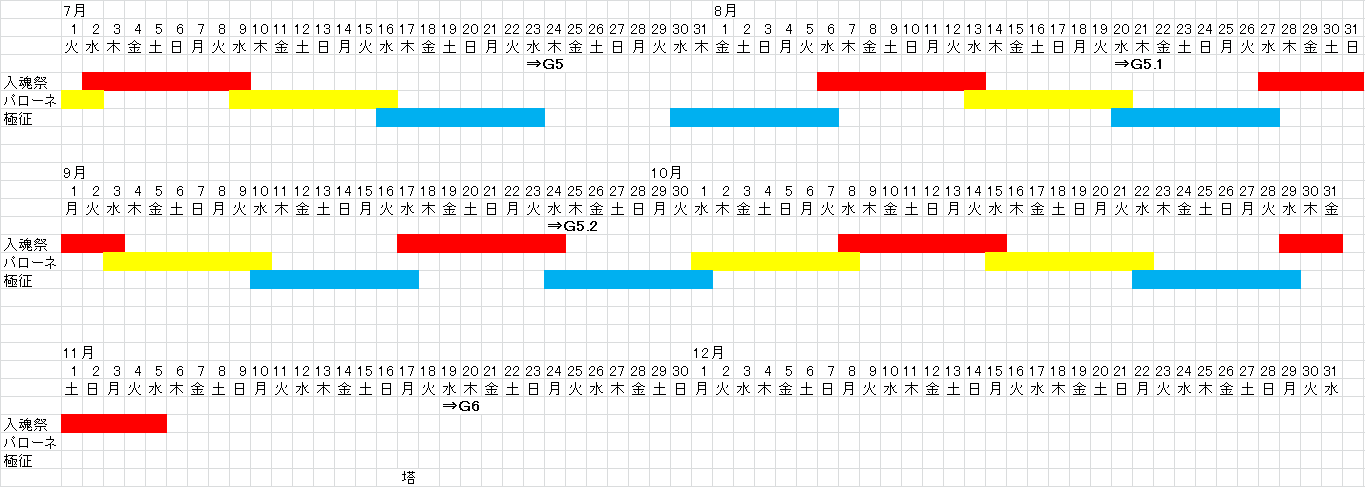 | 8(水) | ゲリョス | ヒプ繁 | ティガ | デュラ |
