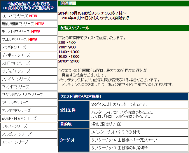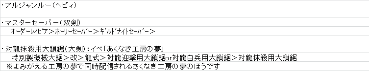 | 12(日) | デュラ | レイア亜 | フルフル | ガロン |