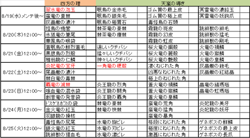 月 | フル亜 | ゲリョ亜 | フル亜 | デュラ |
