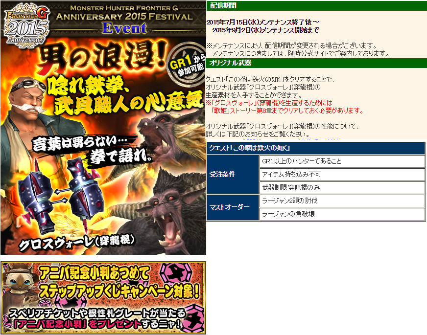 MHF PC&W鯖にて活動中の稀kirin凛♪です(〃'▽'〃) 日々の出来事&拾い集め+既出情報を連ねていきます(* >ω<)