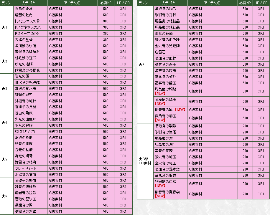 | 土 | レウス亜 | ノノ | ギザミ | ドラ |