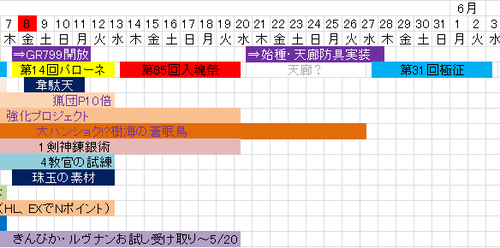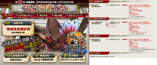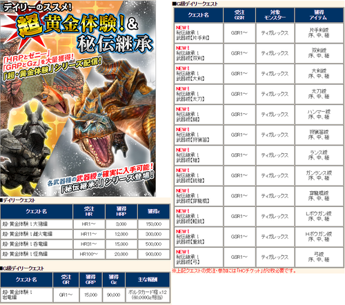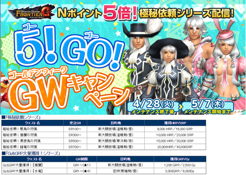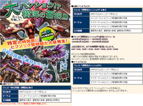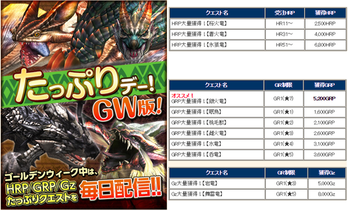 30 | 5/14木 | ギザミ | ガルルガ | バサル | ゴゴ | ドスガレ | フル亜 | グレン |