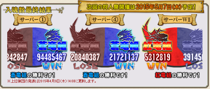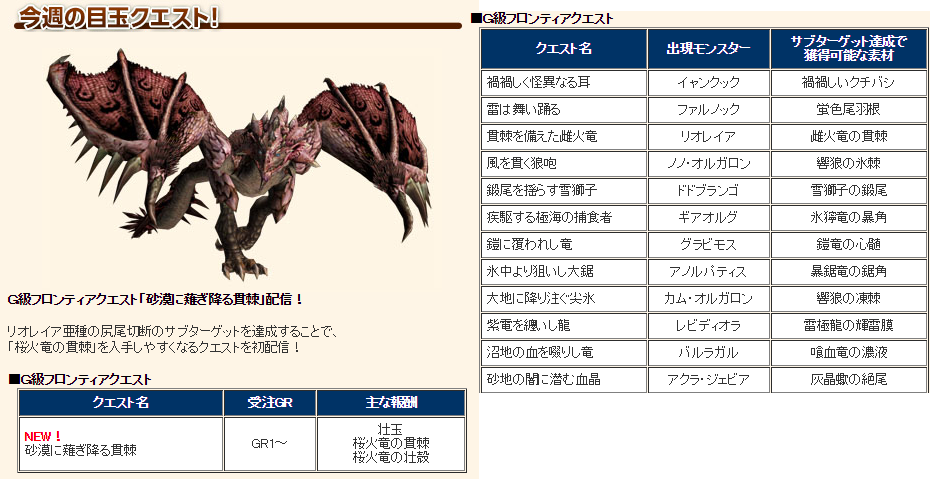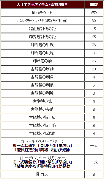 | 4(土) | キリン | ドラ | ギザミ | ドラ |