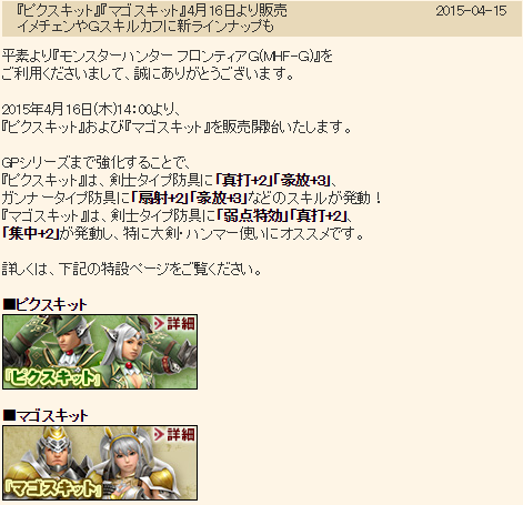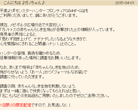 MHF PC&W鯖にて活動中の稀kirin凛♪です(〃'▽'〃) 日々の出来事&拾い集め+既出情報を連ねていきます(* >ω<)